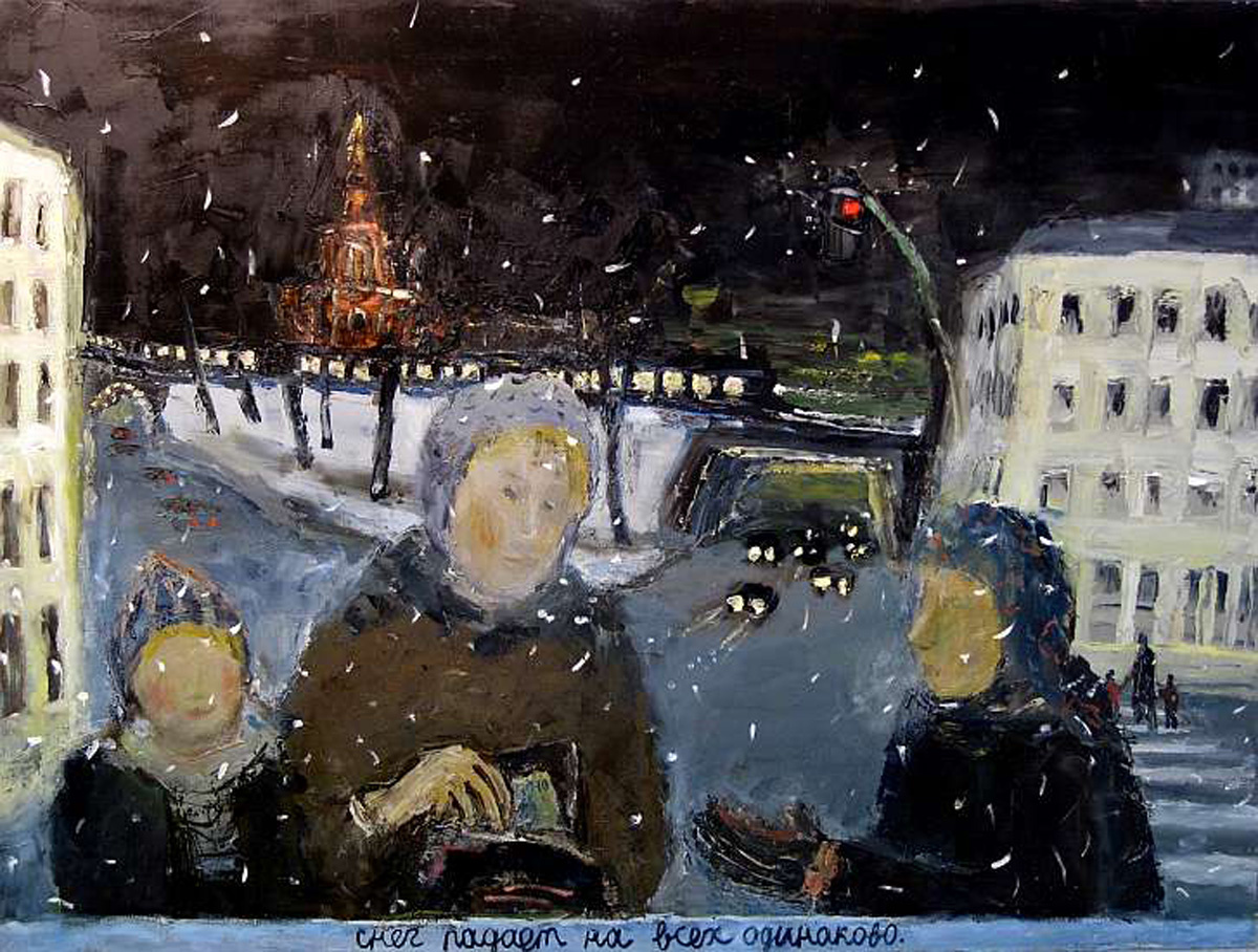 Хороший вопрос. Мы с моим другом, художником Сашей Шевченко, в свое время ходили на этюды, писали Москву. И как-то раз к нам подходит одна женщина и спрашивает: «А вы из какого времени пишете картину?» Мы не поняли сначала ее вопроса. Она уточняет: «Ну, какие у вас на картине годы — 1960-е, 1930-е?» Мы посмеялись над ней, а потом задумались.