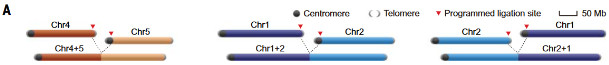 В качестве мишеней авторы эксперимента выбрали две пары: хромосомы 1 и 2 (самые большие в геноме мыши) и 4 и 5 (среднего размера). При этом 1 и 2 решили комбинировать двумя способами: в одном случае пожертвовать центромерой 1, а в другом — центромерой 2.