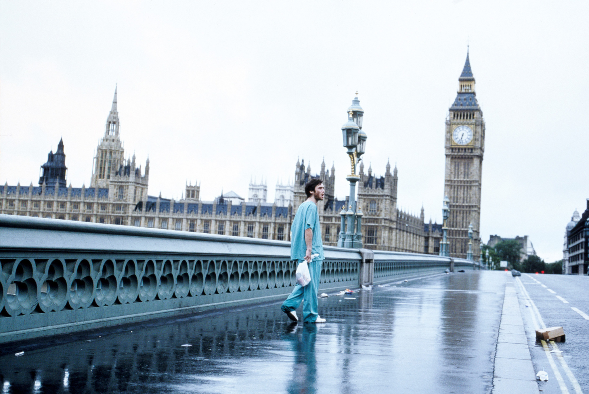 «28 дней спустя», снятый режиссером «На игле» Дэнни Бойлом, не затрагивает масштабные махинации правительства и вместо этого дает нам глобальную картину случившегося. Это фильм о нормальных людях — отце и дочери, группе солдат-дезертиров и овдовевшей и ожесточившейся женщине-химике (чью роль безупречно сыграла Наоми Харрис), — которые пытаются выжить в очень ненормальной ситуации. «28 дней спустя», действие которого происходит на фоне заброшенного, безмолвного Вестминстера, после массового исхода из городов по всему миру, кажется пугающе пророческим.