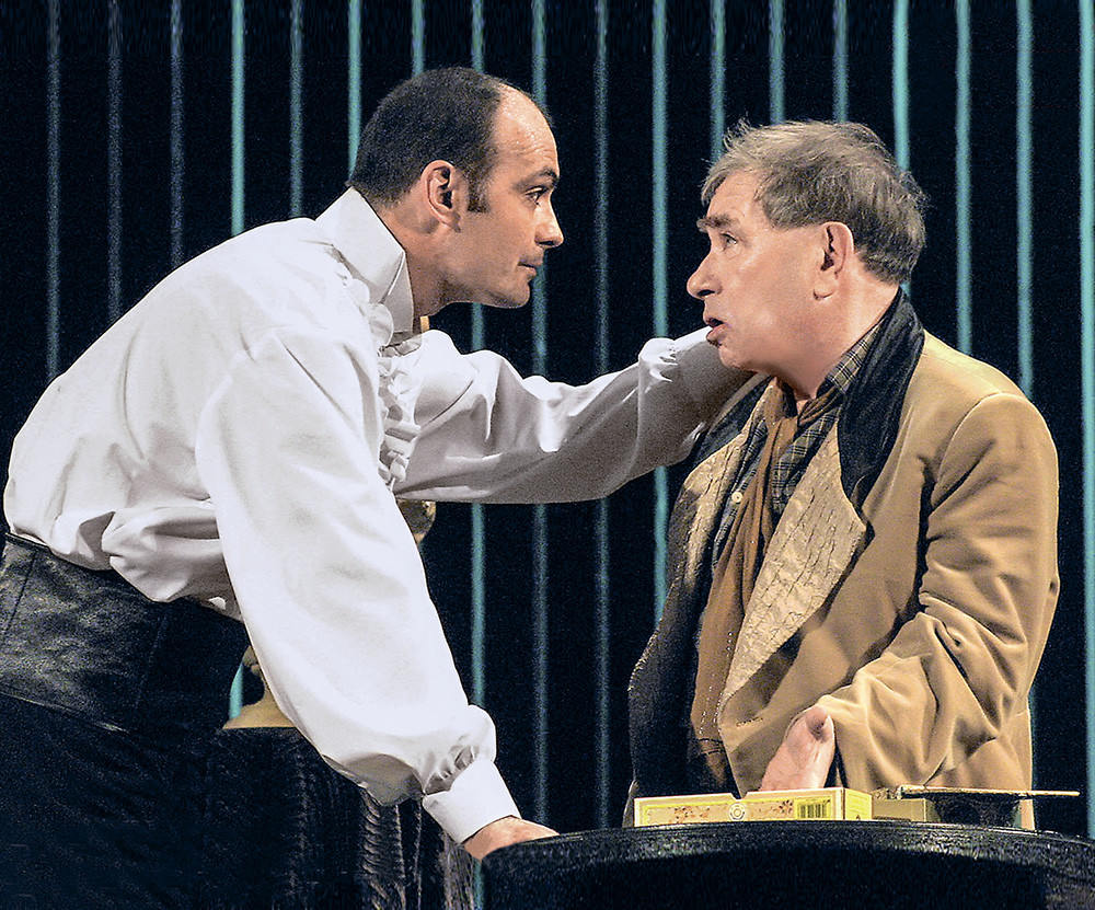 Почти 12 лет мы с успехом играли спектакль на сцене театра. За исполнение роли Кречинского в 2004-м мне вручили театральную премию «Золотой софит». А Расплюев у Светина был гениален: расчетливость и непосредственность, жульничество и озорство — все в одном флаконе. В спектакле был эпизод, когда Кречинский приходит к Расплюеву за деньгами. Получив отказ, хватает его за шкирку, мутузит и швыряет на пол. Когда я спросил: «Михаил Семенович, а как же я вас уроню в этой сцене, вам не больно будет?», он ответил: «Да кидай сколько хочешь, не бойся, я же клоун!»