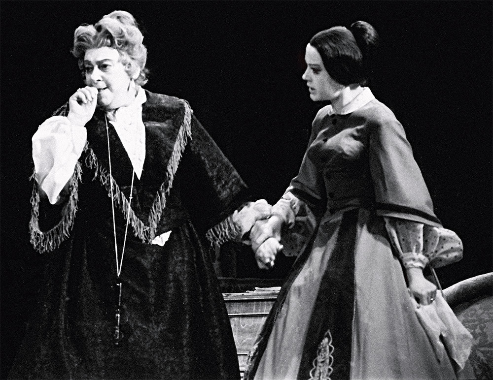 — Нет. Для них это было естественным общением. Они обсуждали что угодно, но не меня. Они вообще меня игнорировали. Наступило время прогонов, и Ирина Сергеевна сказала мне: «Валя, вы чувствуете, что заваливаете роль?» — «Чувствую». — «Ну, приезжайте ко мне домой, еще раз разберем обстоятельства, действия, внутреннее содержание роли, второй план». Я приехала, все разобрали. Прихожу на репетицию на следующий день — все то же самое: я тумбочка... Когда был готов мой костюм, меня облачили в кружевное платье, затянули в корсет, оголили плечи, сделали историческую прическу, надели серьги... Я подошла к зеркалу, которое и сегодня стоит у нас в театре перед сценой, смотрю в него и сама себя спрашиваю: «Кто это?» Через секунду понимаю, что это я. И тут же мне приходит в голову очень простая мысль: «А кого я боялась?» И пошла на сцену. У меня был монолог: «Князь, простите меня...» Я как упала на колени, как начала говорить свой монолог — свободно и просто, от всего сердца — до балкона. Фаина Георгиевна тут же прокомментировала: «Ирина, это же мелодрама!» — «Ничего, ничего, Фаина Георгиевна, — ответила Ирина Сергеевна, — пусть-пусть...» Она поняла, что меня наконец прорвало. И роль у меня пошла...