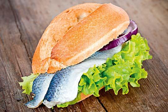 Булочки со свежей рыбкой, маринованными огурчиками и луком продают в палатках с вывеской Frens Haringhandel или Hollandse Nieuwe.