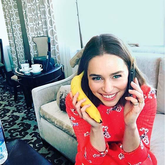 «Отвечаю на ваши вопросы по банану и этому телефону», – делится Эмилия Кларк.