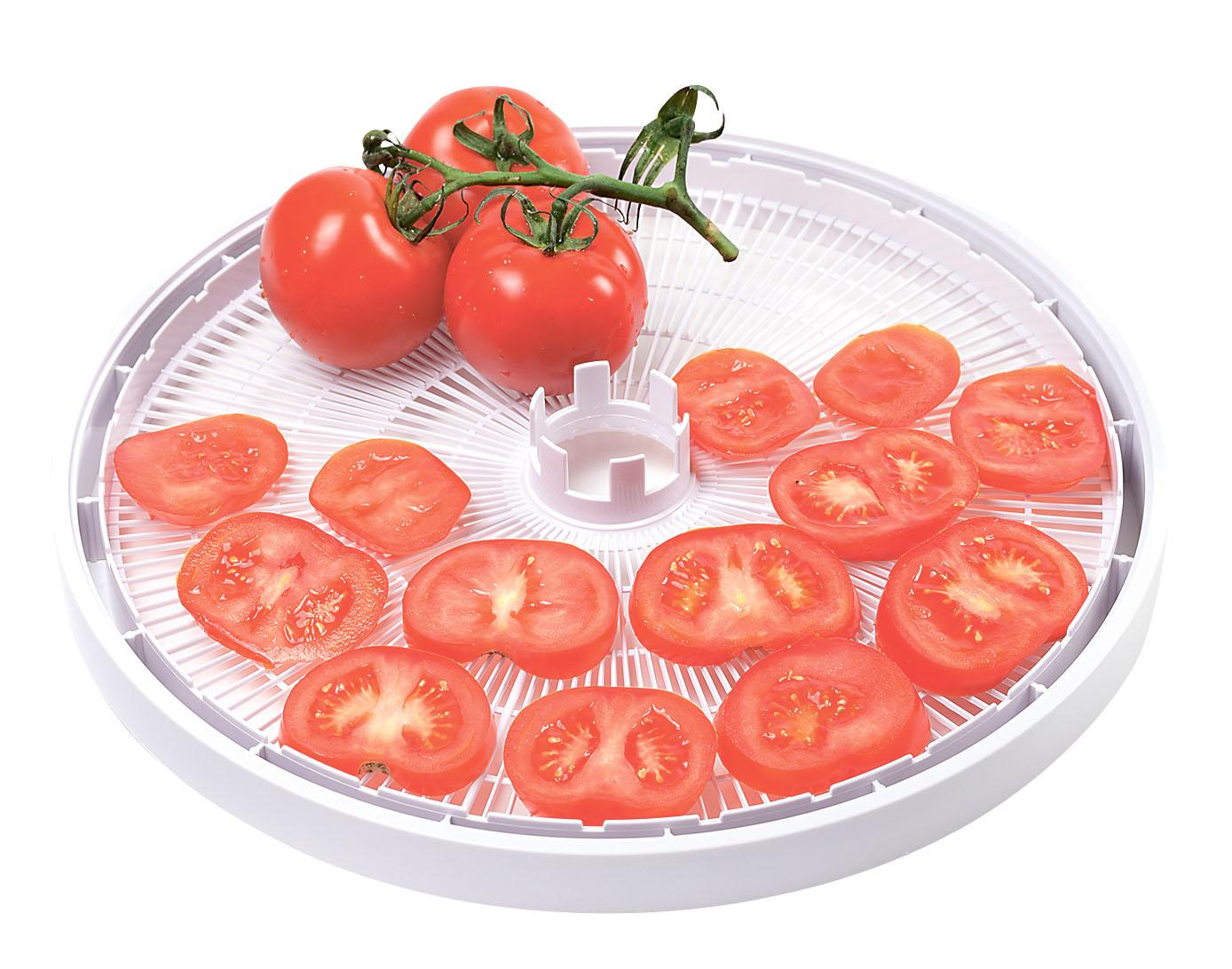 ■ Овощи нарезаются кубиками, помидоры – кружочками. Чтобы кубики не проваливались, можно на лоток положить тонкую ткань. Поскольку одни овощи высыхают быстрее других (дольше всего сохнет картошка), периодически выключай сушилку и меняй лотки местами.