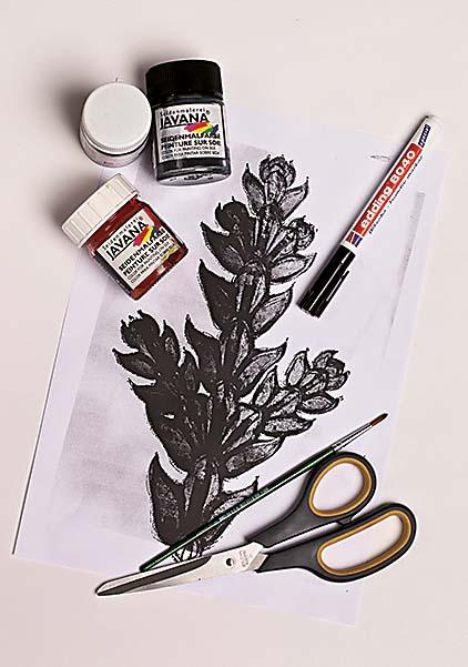 На темных фактурах краска видна плохо, поэтому выбирай ткани светлых оттенков.
