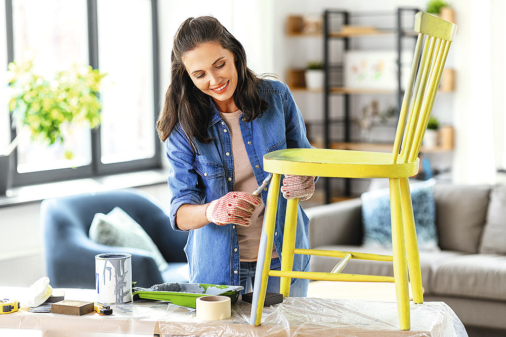Старые деревянные стулья будут смотреться совершенно по-новому, если их ошкурить и покрасить в яркие или, наоборот, спокойные цвета. После того как краска высохнет, не забудь покрыть стул слоем лака.