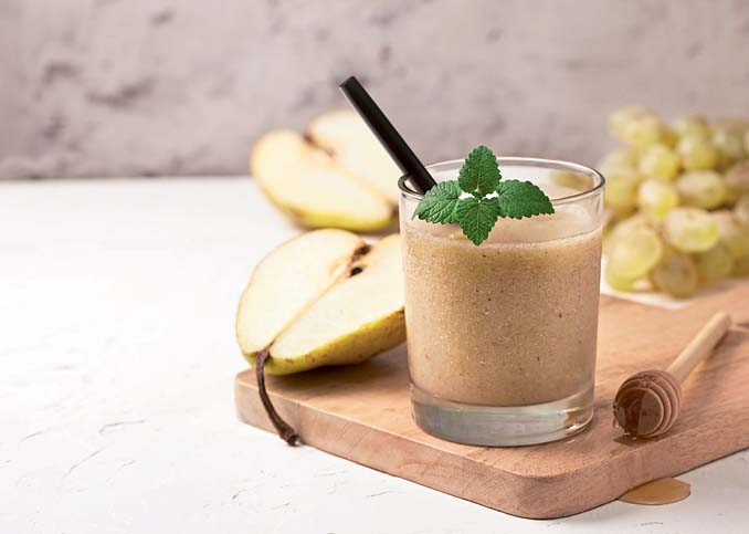 Например, из груши, ягод и овсяных хлопьев. Тебе понадобятся: стакан нежирного кефира, 1 ст. л. овсяных хлопьев, груша, банан, горсть ягод. Смешай все ингредиенты в блендере, добавь немного меда. Такой напиток заряжает организм энергией, повышает защитные силы, положительно влияет на пищеварительную систему и помогает бороться с сезонной депрессией.