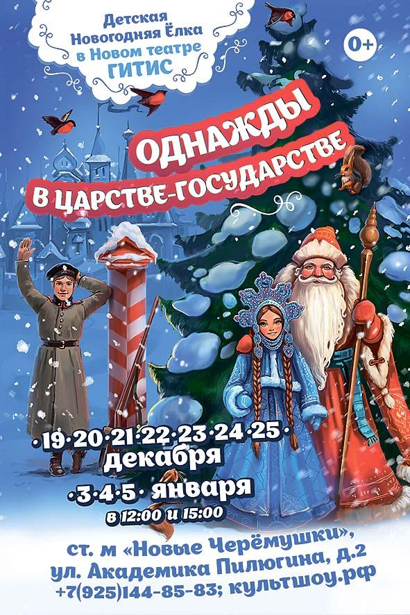 Новый театр ГИТИС совместно с Продюсерским центром «Культшоу» приглашают всех желающих на веселую детскую сказку «Однажды в царстве-государстве». Сюжет непростой: злодейка-Царица обиделась на весь белый свет и захотела сорвать простым добрым людям их главный праздник – Новый год! Да не так глупы были подданные – поменяли они во сне ту вредную царицу на жену сапожника – они похожи были, как две капли воды... Что тут началось! Приходите и обязательно узнаете.
