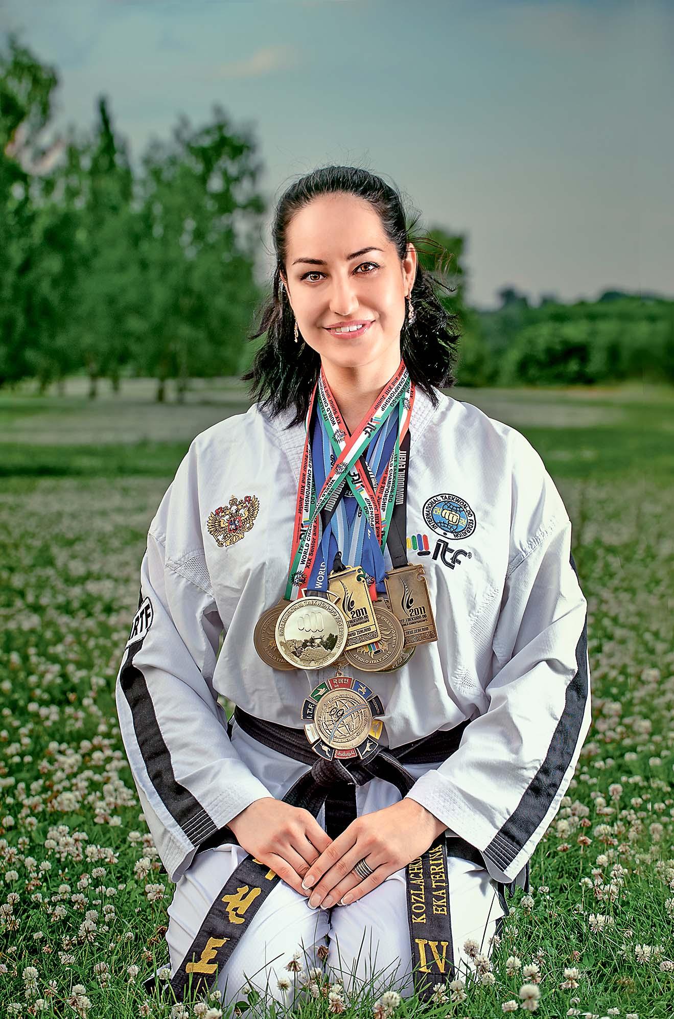 Тхэквондо – древнее корейское боевое искусство, Катя начала заниматься им в 11 лет. Если ты увлекаешься южнокорейскими сериалами или смотришь вместе с мужем боевики, то наверняка видела, как герои в жестокой схватке дубасят своих врагов руками и ногами, иногда – в прыжке. Можно понять, когда мальчишки, насмотревшись кино, устремляются в секции восточных единоборств. Но почему «героем боевика» решила стать девчонка? «Объявление о приеме детей в секцию тхэквондо я увидела на двери нашего подъезда, и вскоре папа привел меня на тренировку, – рассказывает Екатерина. – Занятия проходили в крошечном спортивном зале недалеко от нашего дома. Мне сразу понравился некоторый мистицизм, связанный с этим единоборством. К тому же я хорошо понимала, что, научившись, скажем так, махать руками и ногами, смогу постоять за себя».
