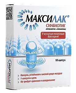 Синбиотик «Максилак» – помощник для кишечной микрофлоры. В 1 капсуле – 9 культур полезных живых бактерий и пребиотик.