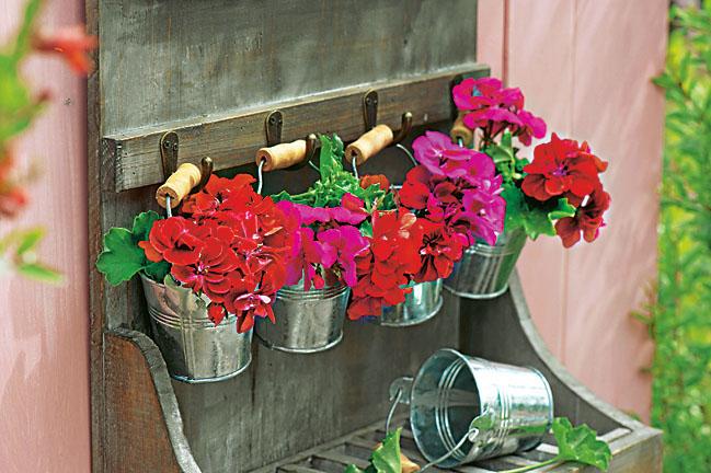 Купи недорогое подвесное кашпо в цветочном отделе или используй другую подручную емкость (например, маленькое ведерко, подвешенное на крючок).