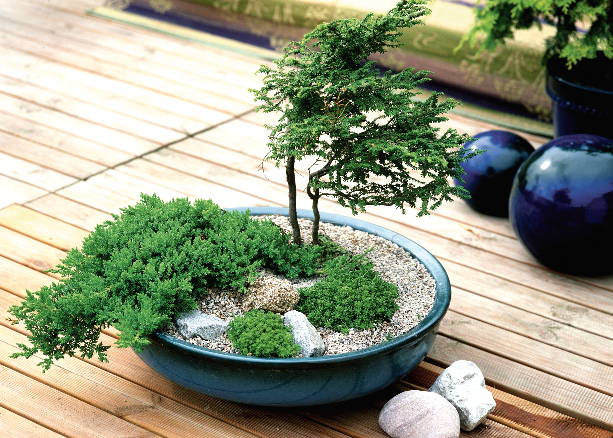 - Гармоничное сочетание камней и растений.