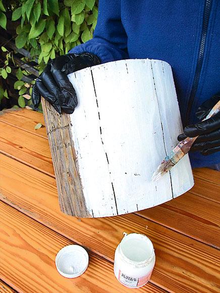 3. Покрой пни акриловым грунтом с помощью кисточки и высуши.