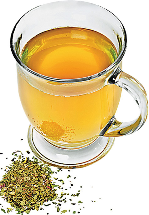 Приготовление: Корень имбиря смешай с натуральным медом, добавь мятный чай и залей 1 л кипящей воды. Дай настояться в течение 5 минут.