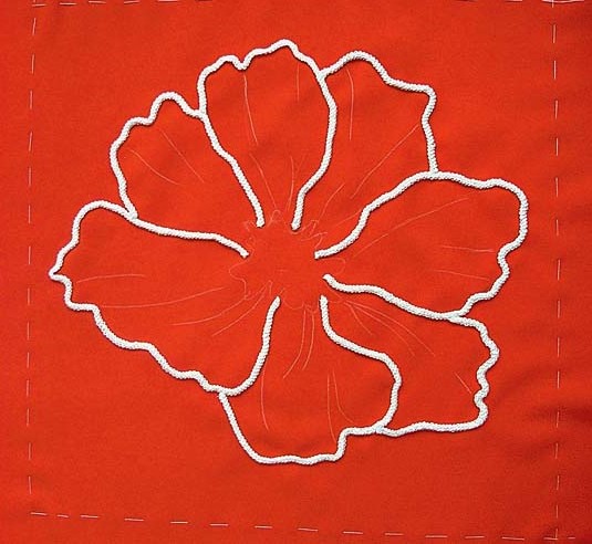 5. Оформляем складочки лепестков и сердцевины цветка. Для этого используй ту же обычную цепочку. Пришей ее к ткани точно так же, как и шнур.