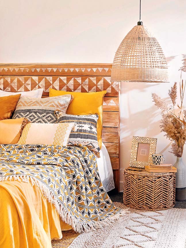 Только натуральные материалы (хлопок и лен). И, конечно, этнические мотивы. Можно не на всем комплекте, а лишь на пододеяльнике или наволочках.