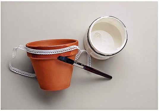 Добавь в интерьер нежной романтики – укрась глиняные горшки декоративными лентами