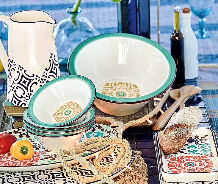 Идеально впишется в «мексиканскую» концепцию глиняная и фаянсовая посуда с колоритным орнаментом, а также неизменные деревянные аксессуары – половники, лопатки, ложки.