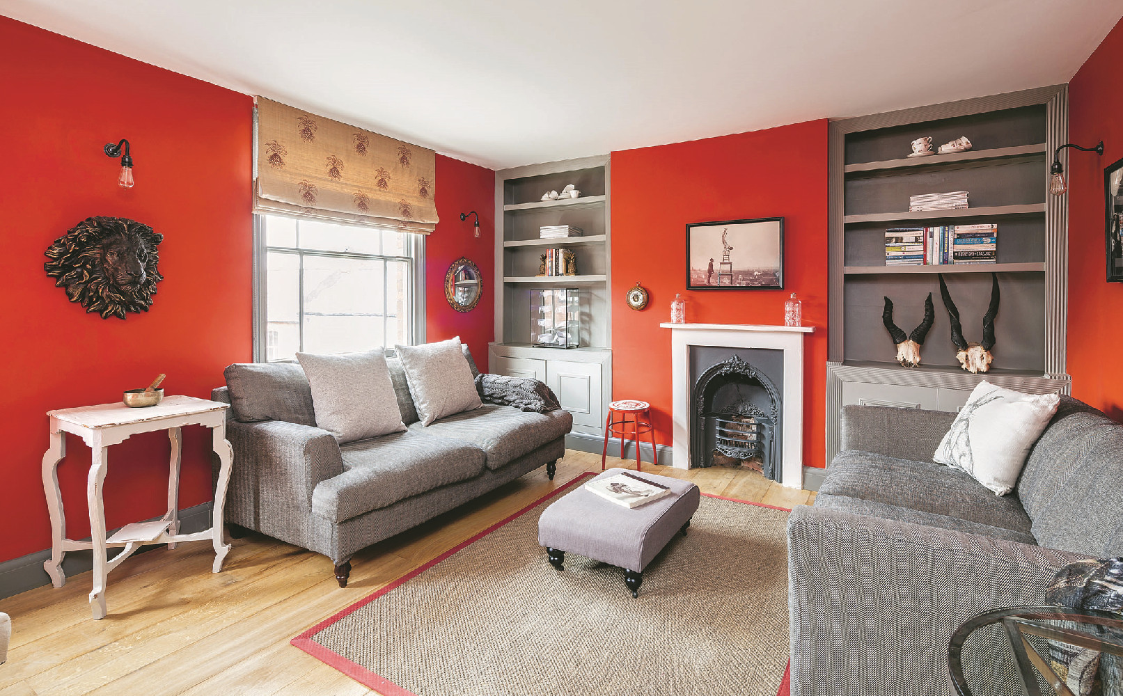 Серый – холодный тон, подходит для южных окон, рабочего кабинета и спальни. Визуально охлаждает, но при неправильном использовании может выглядеть мрачно. Разбавляй его яркими акцентами, например, сочетай с фиолетовым, красным, синим.