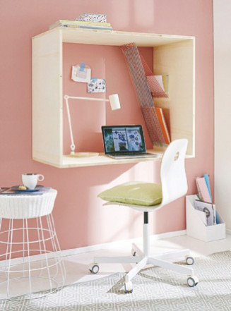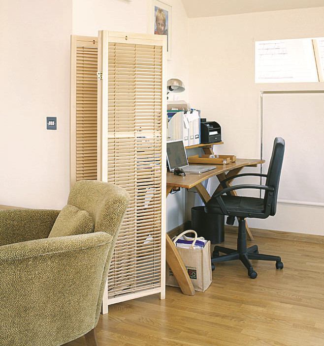 Отводить для рабочего места в квартире отдельную комнату не обязательно. Тем более, что далеко не у всех есть такая возможность. Заниматься делами можно где угодно, если правильно выгородить себе рабочий уголок. В качестве перегородки можно использовать ширму, стеллаж с открытыми полками или шкаф. Это позволит организовать рабочее место в любом уголке дома. Важно только, чтобы этот уголок проветривался и был хорошо освещен. Помни – даже самой мощной настольной лампы недостаточно. Должно быть еще и постоянное верхнее освещение, которое может чередоваться с естественным – из окна. Светящийся прямоугольник экрана в кромешной тьме – прямой путь к плохому зрению. Глаза не любят контрастов и быстро устают.