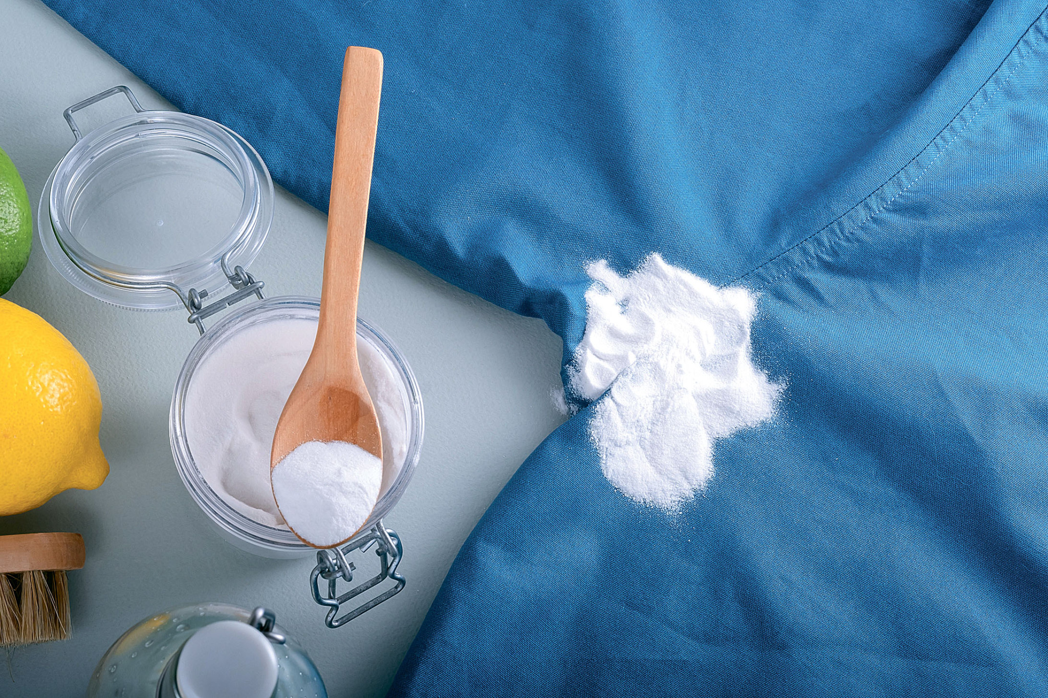 - Аккуратно и равномерно нанеси порошок пищевой соды на загрязненную область и отложи на 10 минут.