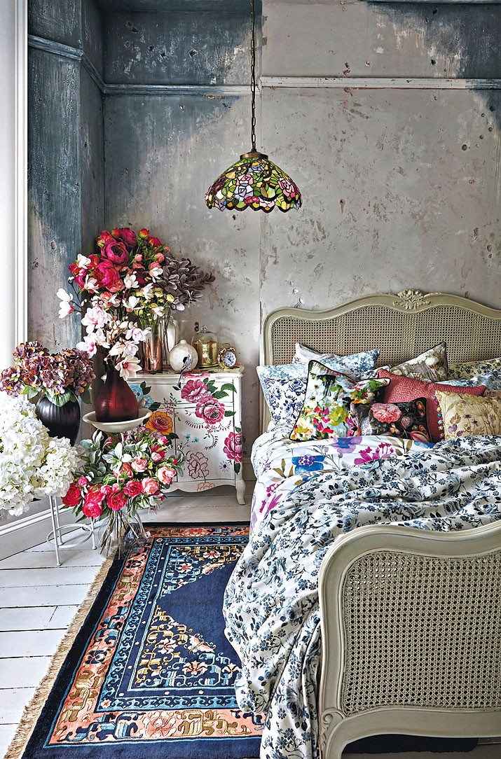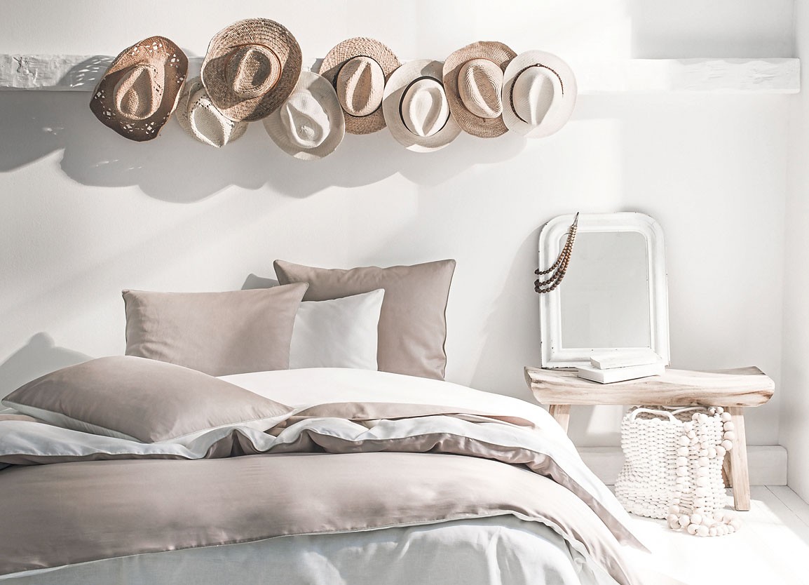 Еще один нестандартный вариант: использовать стену за изголовьем в качестве импровизированной галереи для размещения коллекций. Абсолютно любых – фарфоровых тарелок, соломенных шляп, картин.