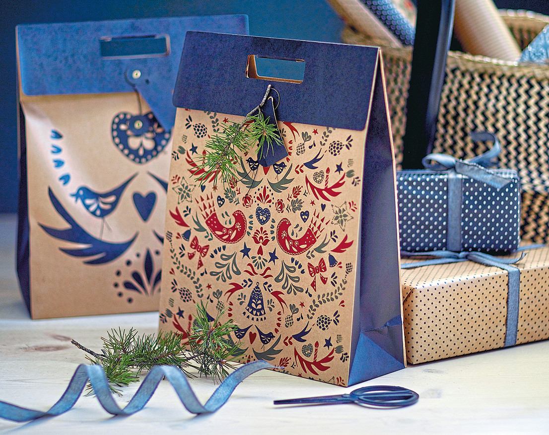 Для сторонников бережного отношения к природе – упаковочные пакеты и коробки из крафт-бумаги либо картона вторичной переработки. Кроме того, обернуть подарок можно и старыми газетами или картами. В качестве декоративных штрихов используй природные элементы – еловые или сосновые веточки, шишки, кусочки коры, ягоды, палочки корицы, птичьи перья. Для закрепления композиции подойдет обыкновенная бечевка.