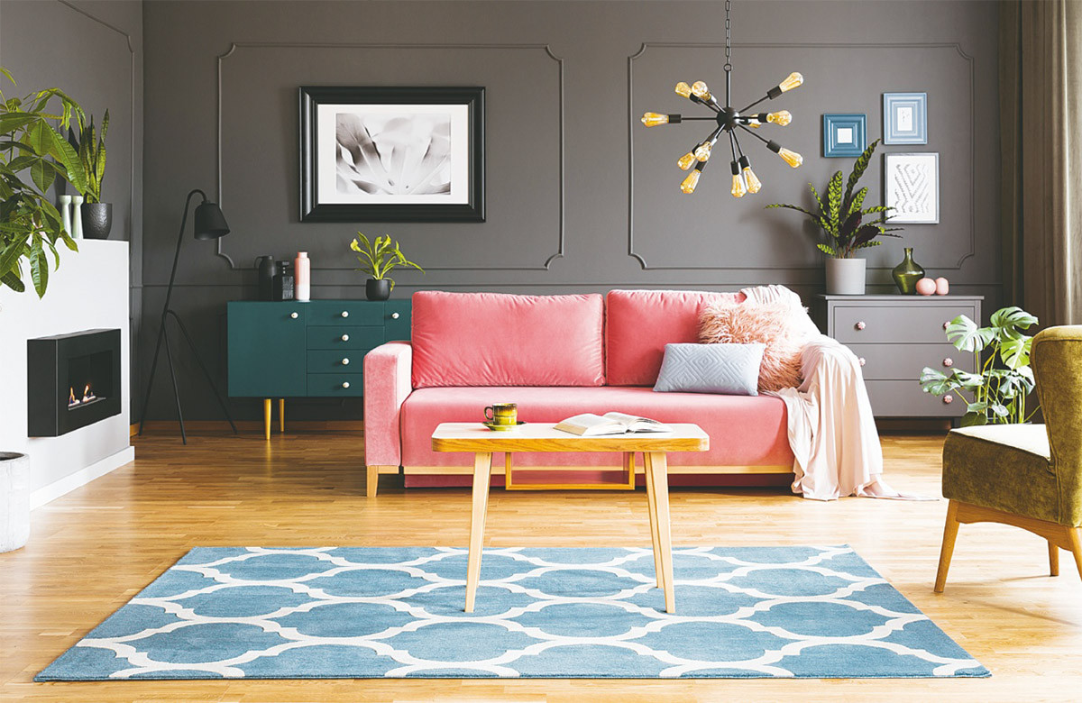 Фактурные ковры неплохо смотрятся на паркете, на полу из натурального камня и керамогранита. Модели с яркими узорами лучше стелить в центре комнаты: им требуется место для того, чтобы заиграть.