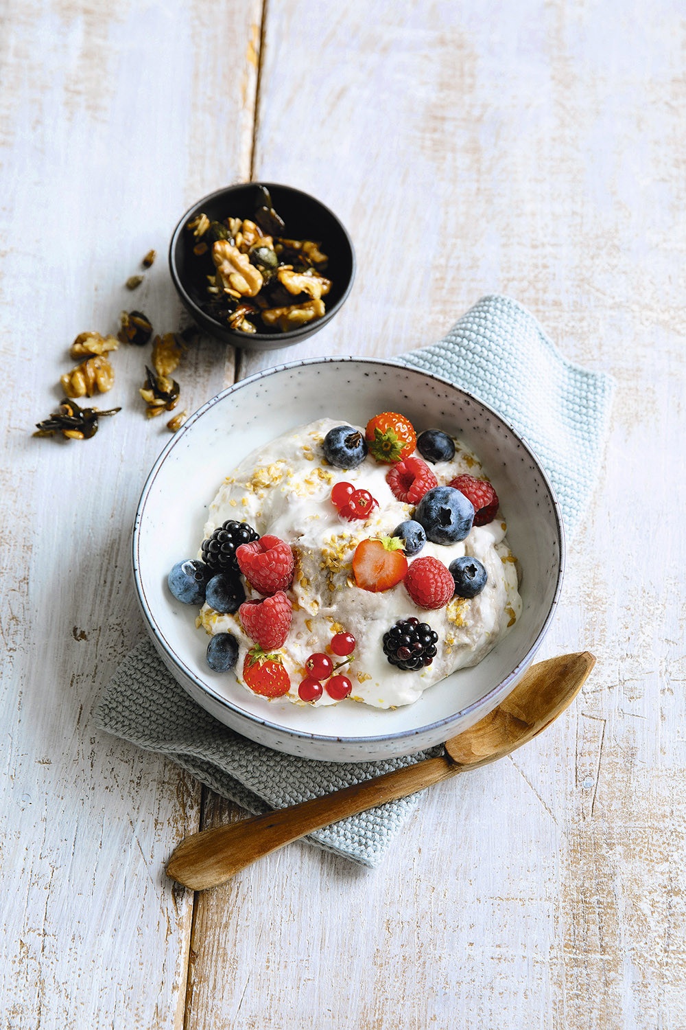 - 100 г нежирного творога,