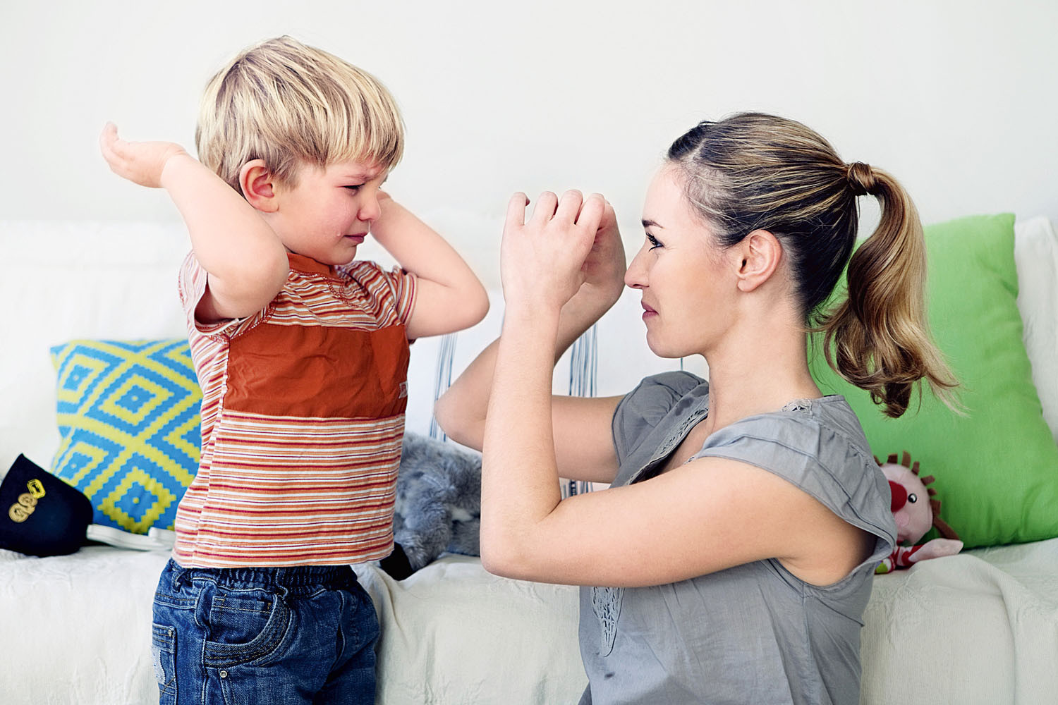 Откажись от любых физических наказаний и постарайся не выяснять отношения с мужем на глазах у ребенка. Очень важно, чтобы в семье была любящая и поддерживающая атмосфера, тогда и у ребенка не будет повода для агрессии.