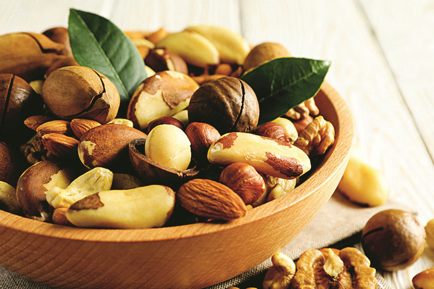 Любые орехи (грецкие, кедровые, фундук, кешью) защищают нас от болезней сердца и рака. Исследователи из Имперского колледжа Лондона обнаружили: у людей, которые ежедневно съедают 20 г орехов (это эквивалентно небольшой горсти), на 30% снижается риск сердечно-сосудистых недугов, на 15% – риск рака и на 22% – риск преждевременной смерти от любой причины. И к тому же любители орехов реже подхватывают ОРВИ. Ешь орехи в сыром виде, добавляй в кашу, панировку для мяса или используй для украшения салатов. Замоченные в воде и измельченные в блендере орехи можно класть в молочные коктейли.