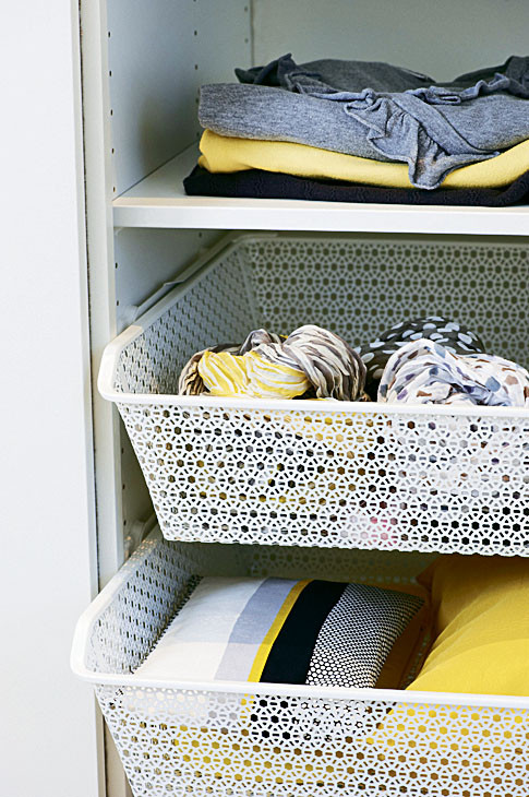 Классический вариант – когда шкаф совмещает в себе отделение со штангой и полки для хранения трикотажа. Также шкаф может быть оснащен выдвижными ящиками или корзинами. Корзины удобны еще и тем, что вещи в них проветриваются. Кроме того, в шкафу могут быть вешалка для галстуков и брюк, держатель для ремней и украшений, различные органайзеры для хранения мелочей.