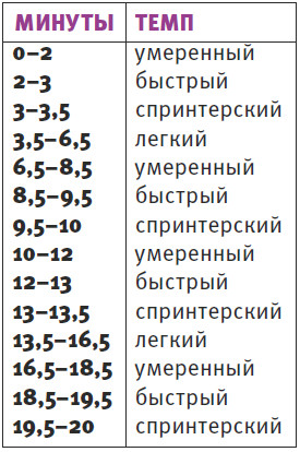 Спринтерский темп. Максимальное ускорение. Ты определенно не сможешь говорить, сердце будет сильно биться. В итоге ты наверняка запыхаешься, но результат того стоит.