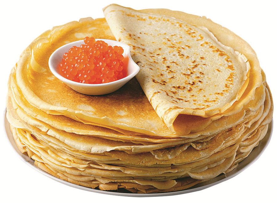 Главным угощением, конечно же, служат блины. Наши предки считали блин символом солнца, поскольку он, как и солнце, желтый, круглый и горячий, и верили, что вместе с блином они съедают частичку его тепла и могущества. По традиции опару ставили в ночь на понедельник, чтобы с утра, к завтраку, на столе уже высилась стопка ароматных «с пылу, с жару» блинчиков.