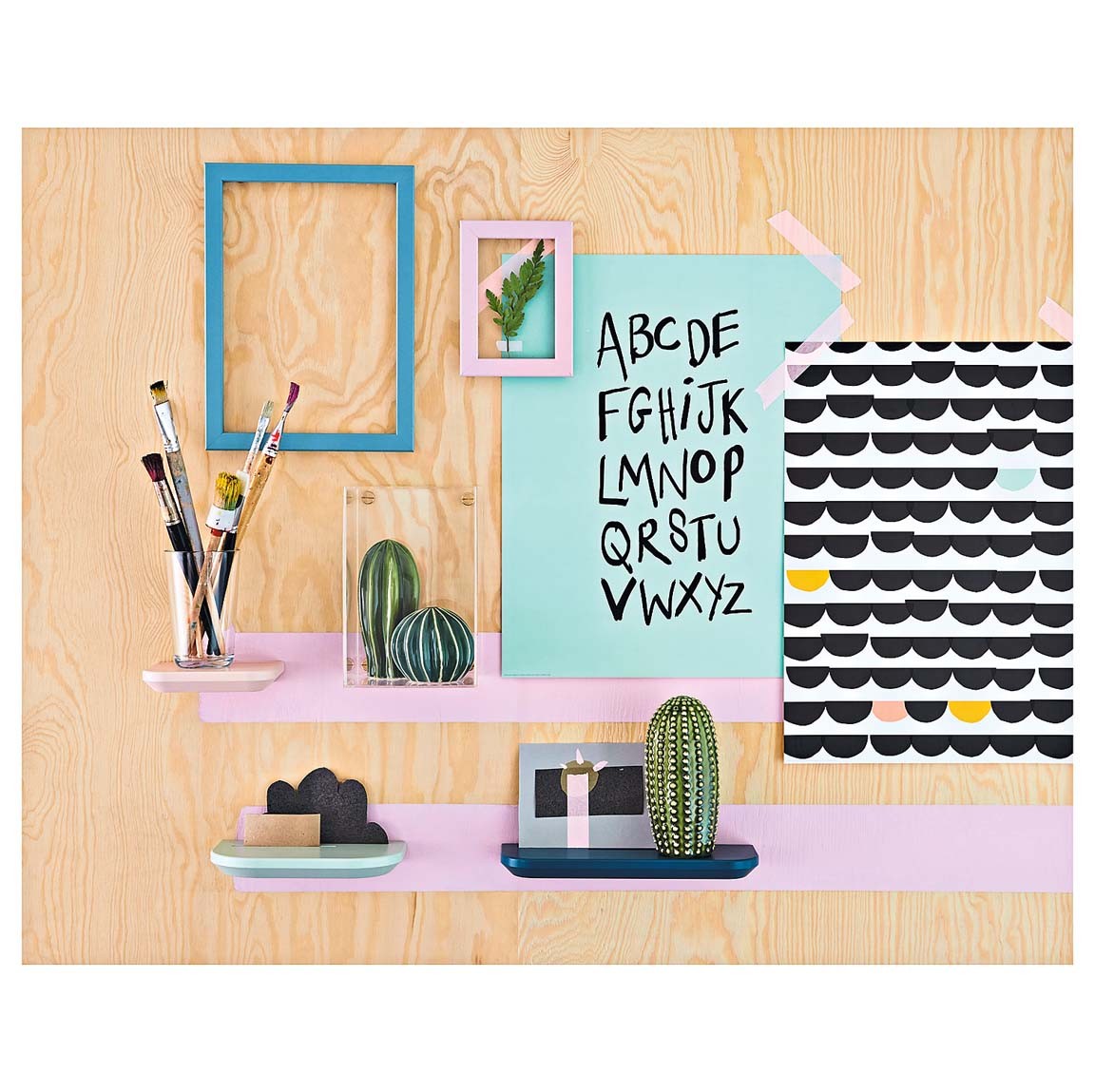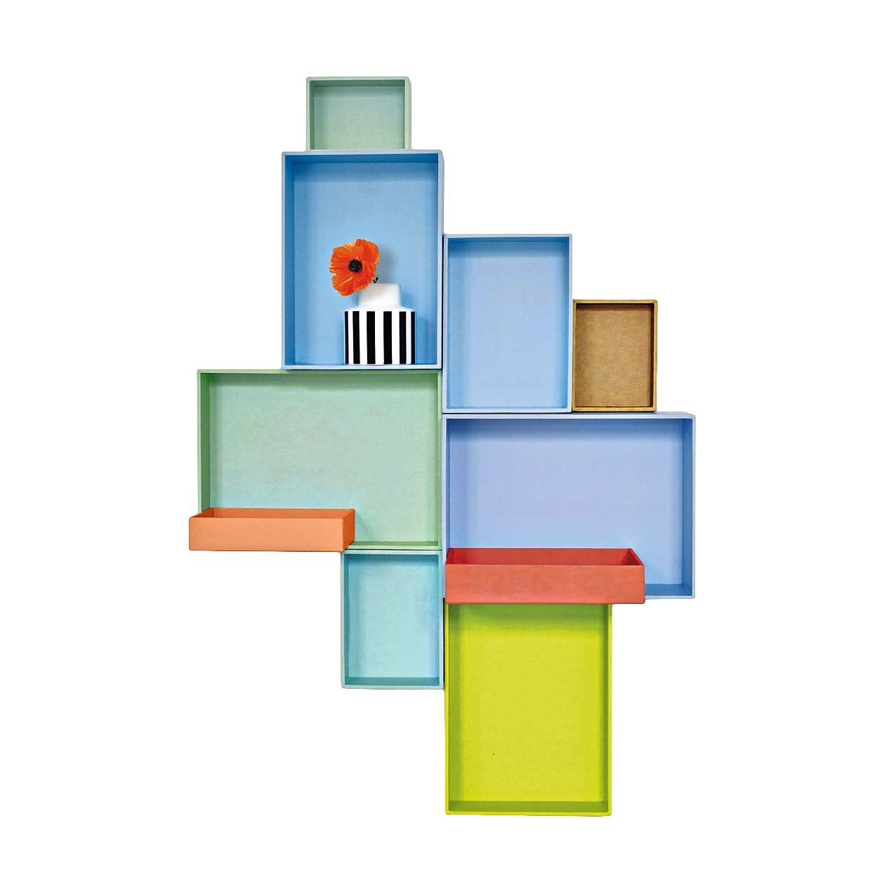 Красочные настенные полки обладают ценным преимуществом: ими можно не только декорировать вертикальные поверхности, но и функционально задействовать их для расстановки книг, растений и мелких аксессуаров.