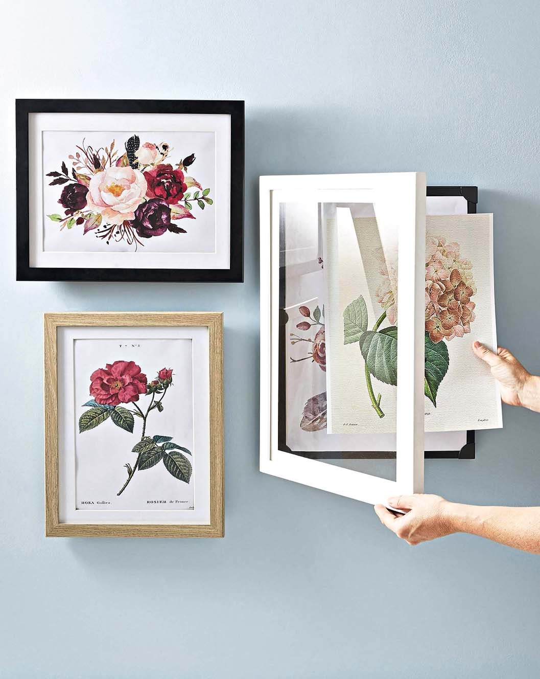 Деревянная рамка с открывающейся стеклянной дверцей для быстрой смены композиции, а также для хранения около 50 графических работ или фотографий – здорово!
