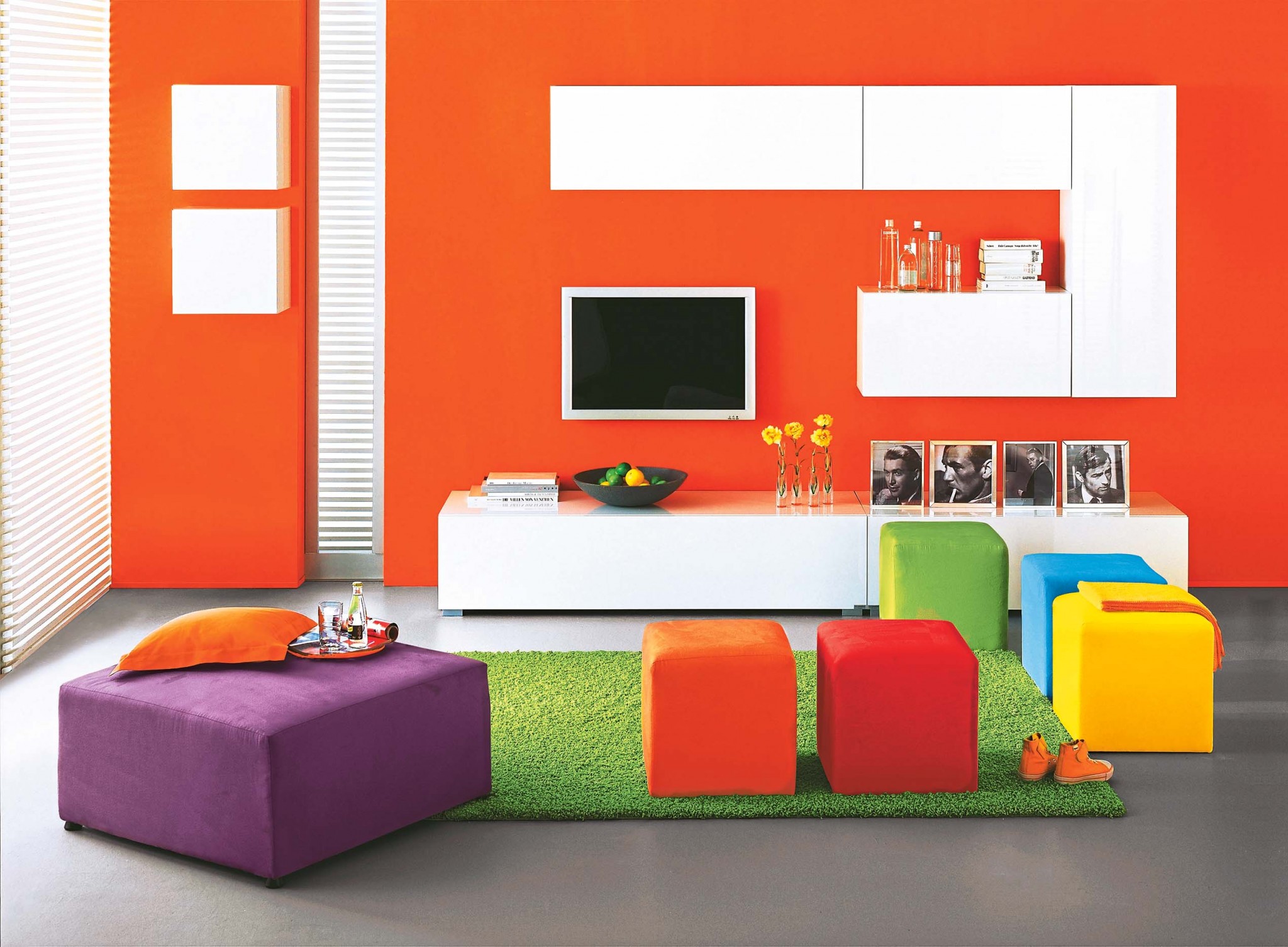 Цветная стена может быть в любом помещении. Но все же стоит признать, что действительно выигрышно она смотрится там, где много естественного света.
