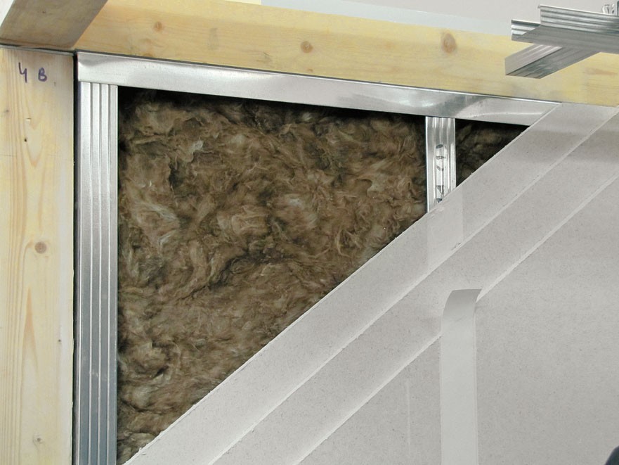Другой вариант – перегородка из конструкционных пенобетонных или газосиликатных блоков. Перегородочные блоки имеют размеры 600 × 200/250/400 × 75/100/120/150 мм. При этом отклонения от «номинала» у изделий ведущих фирм не превышают 1 мм. Материал в 10–14 раз (в зависимости от плотности) легче кирпича и при этом неплохо изолирует звук. По сравнению с каркасной перегородкой, заполненной минеральной ватой, выигрыш в звукоизоляции на низких частотах составит не менее 6 дБ. Но сделать тонкую пеноблочную перегородку прочной не так уж просто (требуется усиленное армирование), к тому же стенку придется с двух сторон штукатурить. Как показывает практика, кладочные перегородки обходятся на 30–50% дороже каркасных.