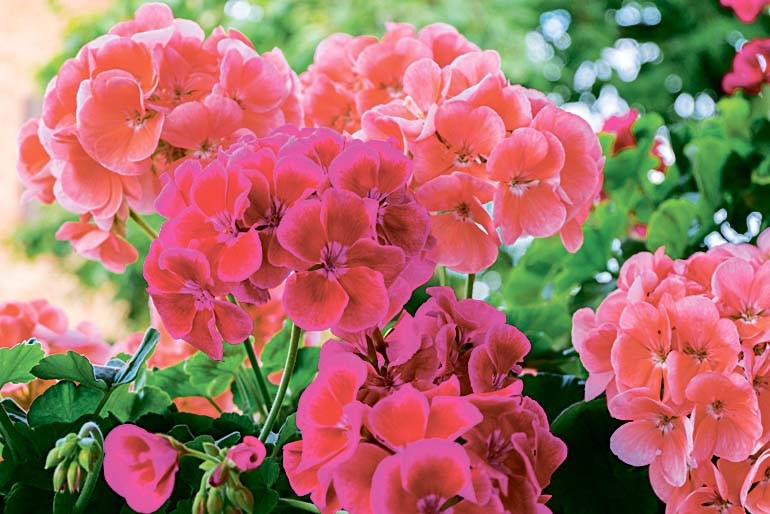 3. Герань. Радует цветами разных оттенков с конца мая до конца августа. Цветы недолговечны, но на том же месте быстро появляются новые бутоны. В период покоя – осенью – сад украшает пурпурная листва, которая сохраняется до зимы. Все разновидности неприхотливые, не нуждаются в особом уходе, растут и в тени, и на солнечных участках.