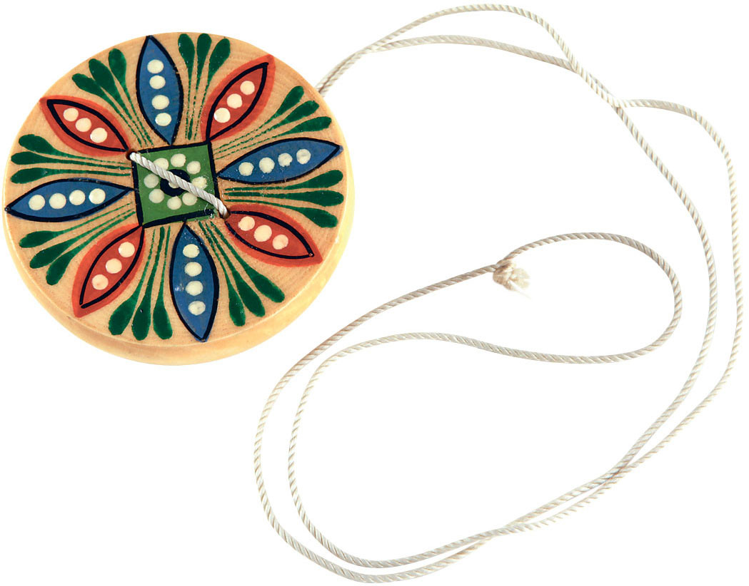 В большую пуговицу с двумя дырочками продень шнурок длиной 60–70 см и завяжи узелком. Надень шнур на указательные пальцы так, чтобы пуговица была в середине. Вращательными движениями (как скакалку) закрути. А теперь разведи руки. Пуговица начнет подпрыгивать и издавать звук «фуррр»...