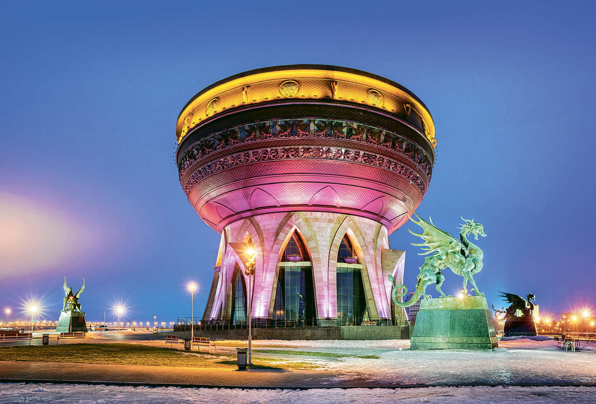 Для послеобеденной прогулки выбери берег озера Кабан, где расположена Старо-Татарская Слобода со старинными деревянными постройками и минаретами. Кстати, во время передвижения по городу хотя бы однажды спустись в метро: интерьер всех шести казанских станций создан по мотивам русского и татарского фольклора и, поверь, заслуживает внимания.