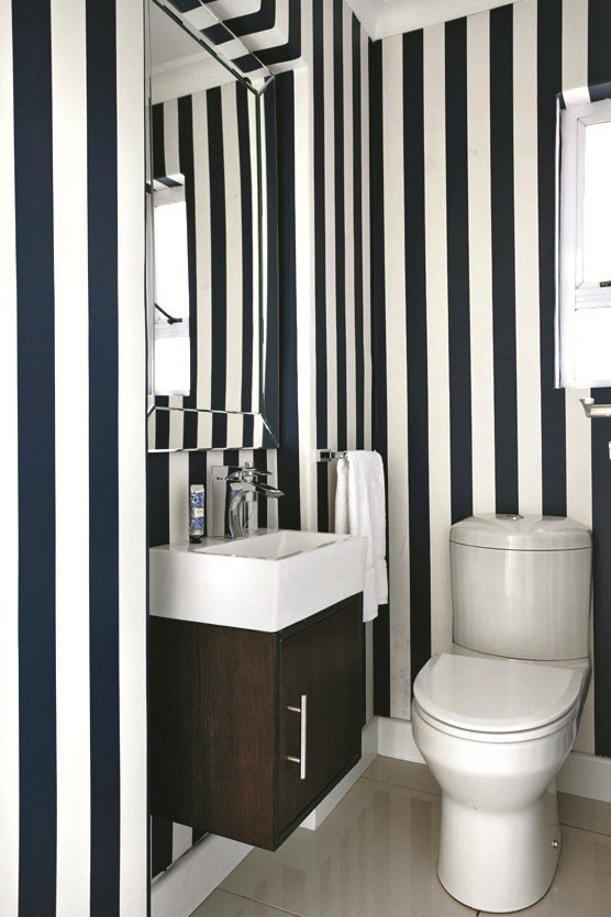 БЕЗ ЛИРИКИ. Вертикальная полоска, «приподнимающая» потолок. Мебель и сантехника простых форм. Стильно!