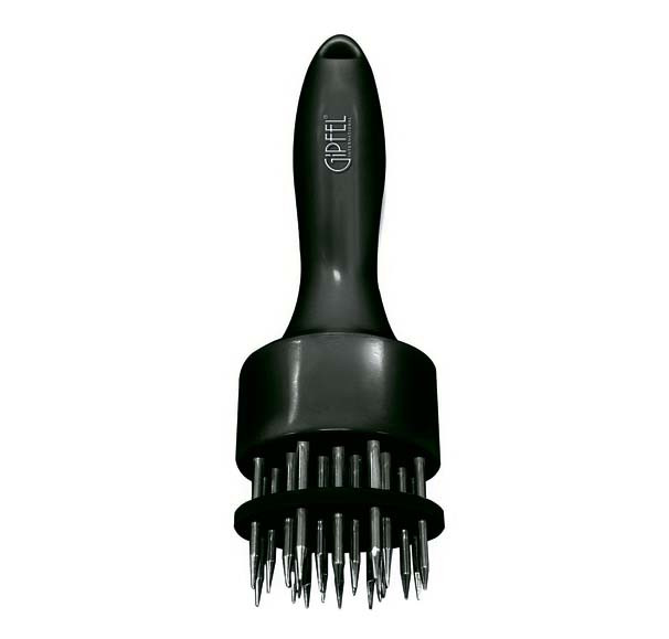 Вместо молотка для отбивания лучше использовать тендерайзер. Его острые шипы размягчают мясо и помогают ему избавиться от лишней воды. Благодаря этому во время обжаривания оно практически не теряет сок, сохраняет форму и как губка впитывает специи.