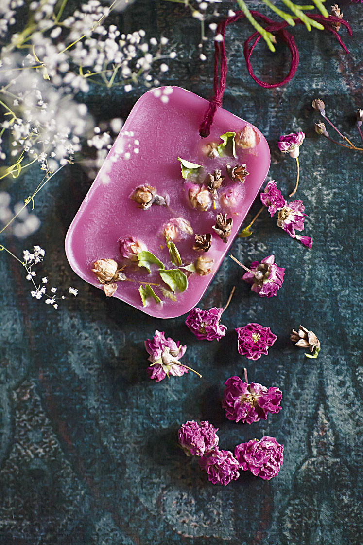 Даже если ты никогда не увлекалась мыловарением, сейчас в интернет-магазинах для творчества можно найти все необходимое, чтобы без навыков легко и недорого сделать кусочек красивого ароматного мыла. Вплоть до наборов для начинающего мыловара. Чтобы сэкономить время и деньги, сделай самый простой и экономный вариант. Мыльную основу растопи с микроволновке, добавь немного красителя и отдушки и налей в силиконовую форму до половины. Убери на 2–3 часа в прохладное место. Затем на застывшую поверхность уложи конверт ддекор – сухие цветы, сушеные фрукты, блестки и т. п. Растопи остатки основы и залей форму доверху.
