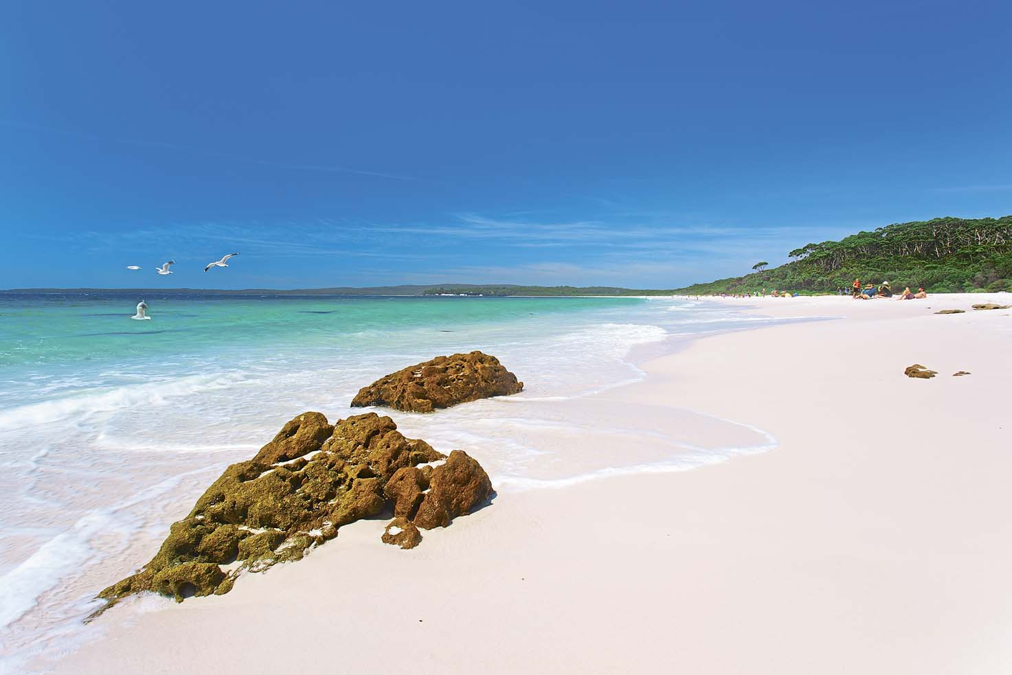 Как утверждает Книга рекордов Гиннесса, самый белый пляж надо искать в далекой от нас Австралии. Два с небольшим часа езды от Сиднея – и ты оказываешься у бухты Джервис, на пляже Hyams. Без солнечных очков здесь сложно находиться – глаза болят от ярко-белой прибрежной полосы. Кстати, песок здесь не только самый белый в мире, но и самый мелкий. На ощупь как пудра!