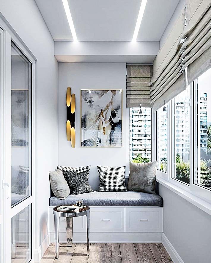 Если размеры балкона позволяют, можно установить здесь диван или банкетку с системой хранения внутри. На самом деле балкон может стать не только местом отдыха, но и рабочим кабинетом или пространством для творчества. Тут все зависит лишь от твоей решимости. Готова навести порядок в отложенных делах? Приступай! Тогда балкон превратится из склада забытых вещей в комфортное место для релаксации. Добавь в оформление нотки своей индивидуальности и наслаждайся красивым видом.