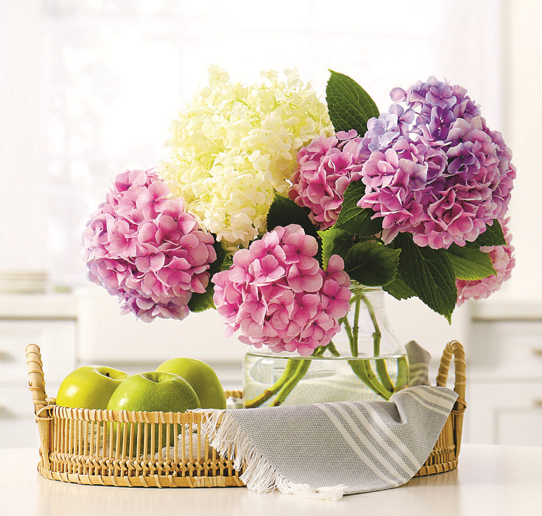 Чтобы цветы простояли в вазе до двух недель, ее стебель необходимо обрезать под углом 45 градусов и затем расщепить его, чтобы вода могла проникнуть как можно глубже. При этом вазу для гортензии надо наполнить до краев. Еще гортензия любит регулярные опрыскивания, прохладу и частую смену воды.
