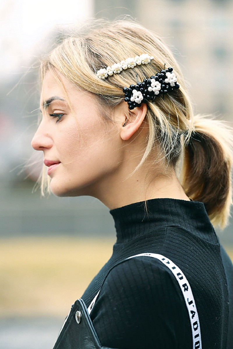 Самый простой хвост будет смотреться стильно благодаря модным заколкам.