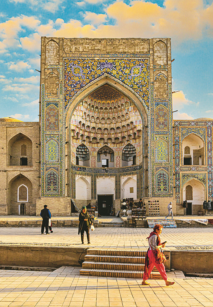 Великого шелкового пути Это раньше из Самарканда в Бухару караваны шли несколько недель, а теперь скоростной поезд «Афросиаб» преодолевает это расстояние за 1 час 40 минут (билет в одну сторону – ок. 1500 руб.). И путешественники оказываются совершенно в другой реальности: из шумного, по-восточному бурлящего Самарканда они попадают в компактную, провинциально-уютную Бухару. Но не смотри на скромные размеры: в городе почти 140 памятников архитектуры. Самые главные – крепость Арк, минарет Калян, медресе Мири Араб. Под сводами крытых базаров XVI века (их в Бухаре сохранилось четыре) словно переносишься во времена расцвета Великого шелкового пути: здесь идет бойкая торговля сувенирами, коврами, керамикой, сюзане (расшитые вручную покрывала, когда-то считавшиеся неотъемлемой частью приданого невесты). И чтобы прочувствовать все архитектурное совершенство этих мест, надо вставать на рассвете, когда лавки еще не открыты.