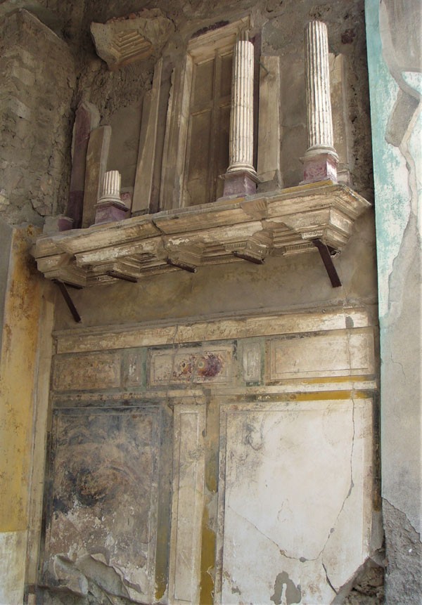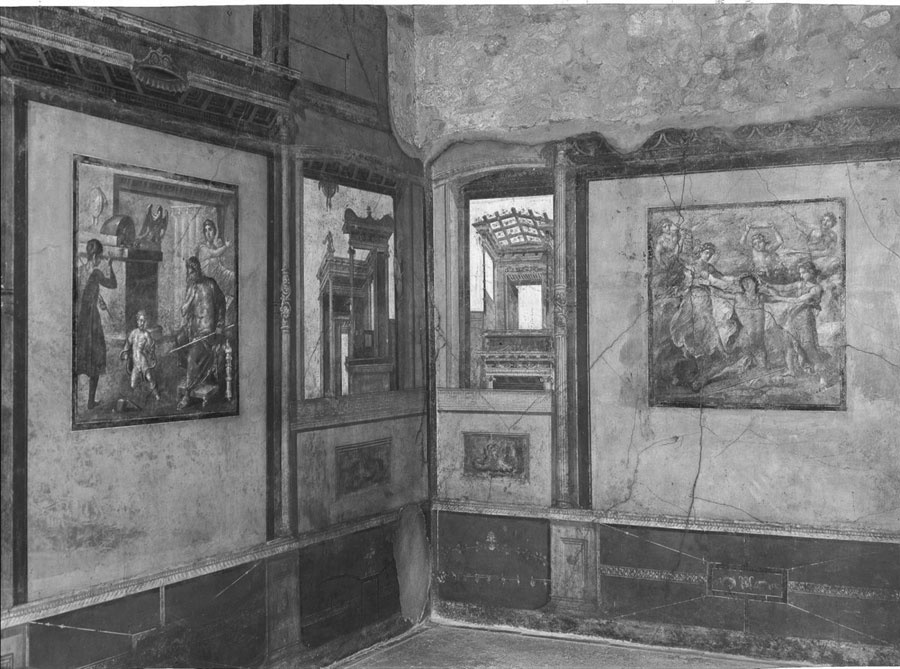 Этот «стиль» был распространен в Помпеях во II веке до нашей эры, когда город еще принадлежал местным италийским племенам — оскам и самнитам. Сохраняя эту древнюю отделку на протяжении столетий, подновляя и реставрируя ее, хозяева давали понять гостям, что не гонятся за модой, привержены традициям и простоте предков.